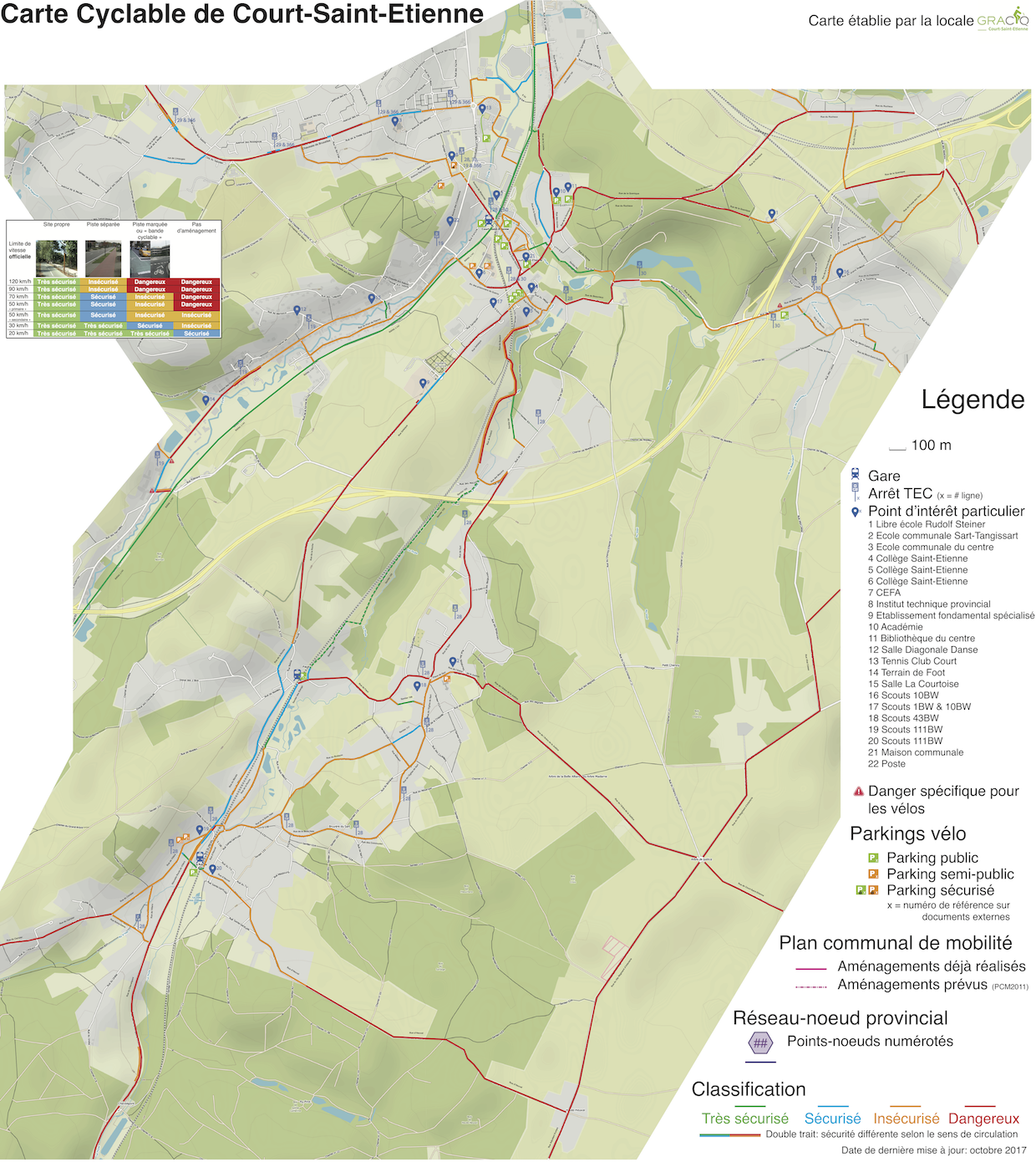 À côté de ses diverses actions, le GRACQ de Court-Saint-Etienne souhaite promouvoir l’utilisation du vélo comme mode de déplacement quotidien. À cet égard, nous veillons à établir des états des lieux précis des aménagements existants afin d’objectiver les discussions avec les responsables politiques et autres responsables des infrastructures cyclables. Si vous connaissez bien votre quartier et avez un avis sur la question, des corrections à émettre par rapport aux cartes ci-dessous, ou des photos soulignant tel aspect cyclable ou peu cyclable, contactez-nous.