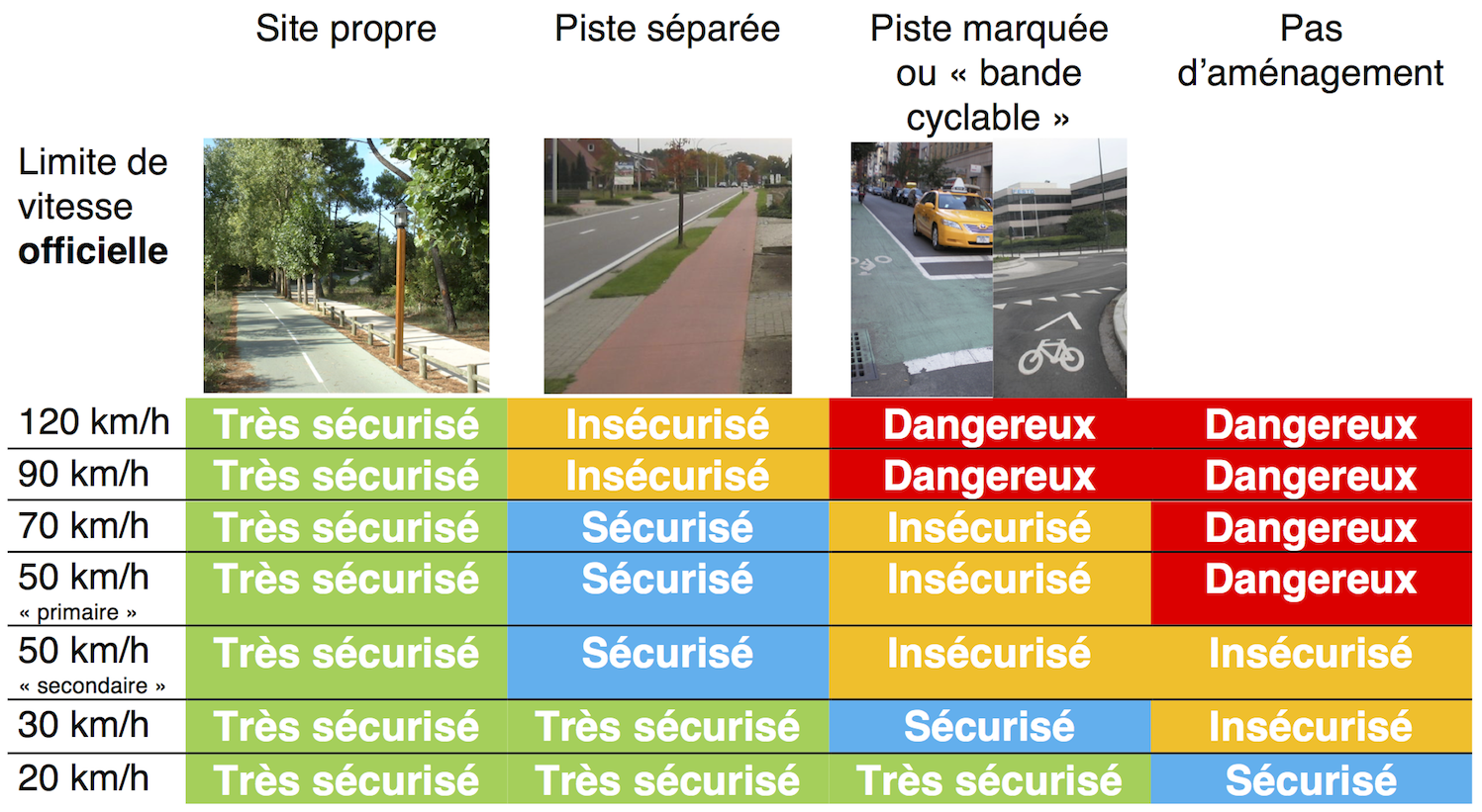 Ensuite, pour objectiver les discussions, nous avons classé chacune de ces rues en fonction de critères factuels, basés sur la vitesse et les aménagements existants, tel que par le tableau ci-joint: